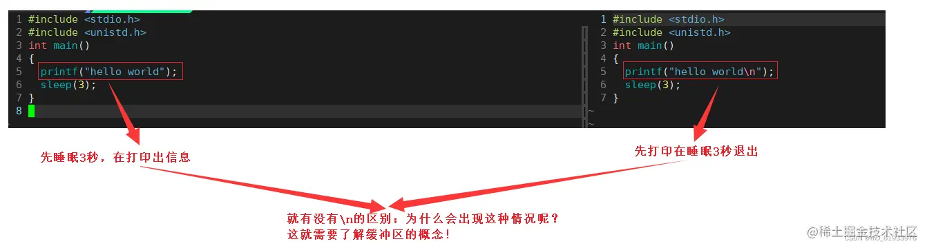 ⭐️对于前者不带\n是先睡眠3秒,然后直接打印结束;为什么呢?这就涉及到缓冲区的概念了!那么怎么不带\n也能带到带\n的效果呢?利用fflush刷新一下缓冲区!