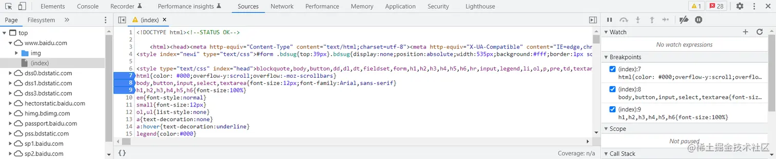 展开Call stack 可以查看当前JavaScript代码的调用栈