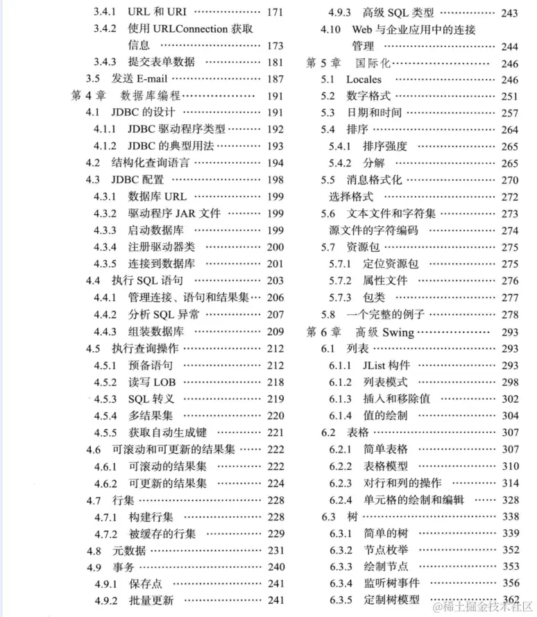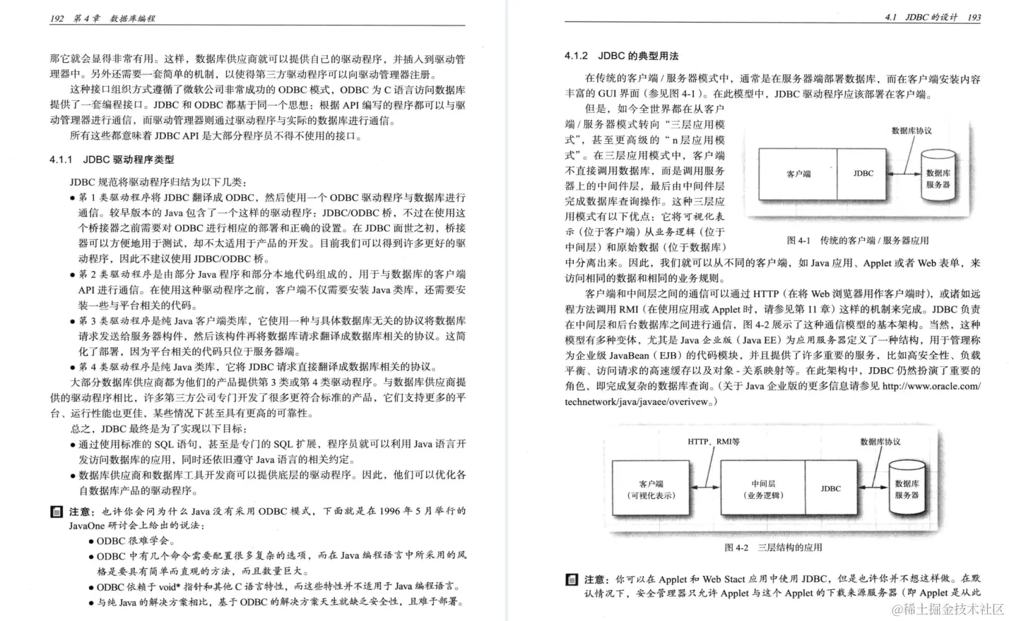 第4章介绍数据库编程,重点讲解JDBC,即Java数据库连接API,这是用于将Java程序与关系数据库进行连接的API。我们将介绍怎样通过使用JDBC API的核心子集,编写能够处理实际的数据库日常操作事务的实用程序。(如果要完整介绍JDBC API的功能,可能需要编写—本像本书一样厚的书才行。)最后我们简要介绍了层次数据库,探讨了一下JNDI(Java命名及目录接口)以及LDAP(轻量级目录访问协议)。
