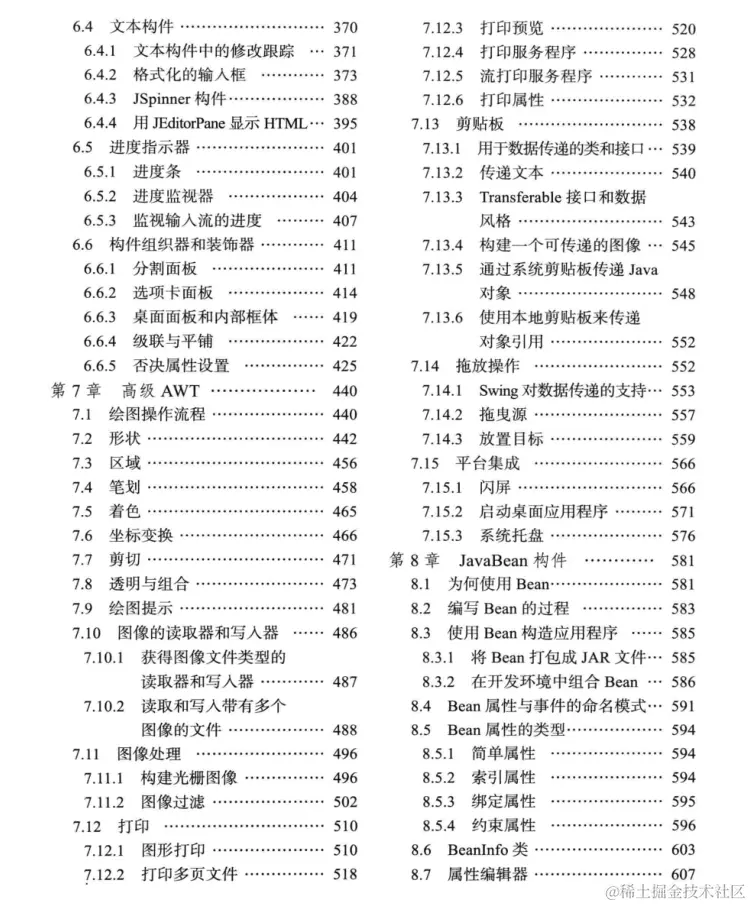 第7章介绍Java 2D API,你可以用它来创建实际的图形和特殊的效果。该章还介绍了抽象窗口操作工具包(AWT)的一些高级特性,这部分内容看起来过于专业,不适合在卷Ⅰ中介绍。虽然如此,这些技术还是应该成为每一个编程人员工具包的一部分。这些特性包括打印和用于剪切粘贴及拖放的API。