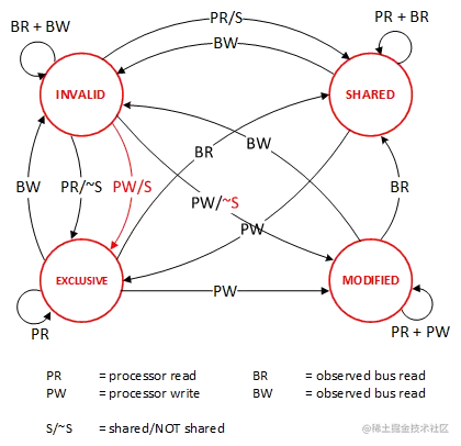 需要说明的是,AMD用MOESI,Intel用MESIF。所以,F 状态主要是针对 CPU L3 Cache 设计的(前面我们说过,L3是所有CPU核心共享的)。(相关的比较可以参看StackOverlow上这个问题的答案)
