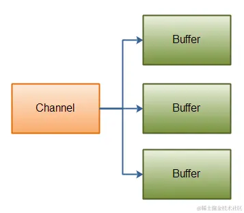 注意buffer首先被插入到数组,然后再将数组作为channel.read() 的输入参数。read()方法按照buffer在数组中的顺序将从channel中读取的数据写入到buffer,当一个buffer被写满后,channel紧接着向另一个buffer中写。