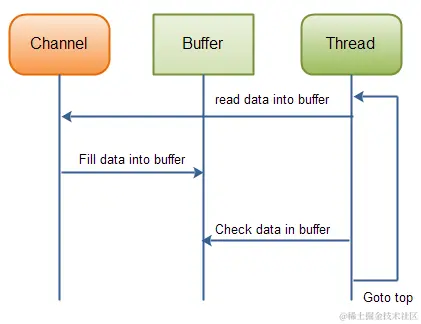当然,使用NIO的API调用时看起来与使用IO时有所不同,但这并不意外,因为并不是仅从一个InputStream逐字节读取,而是数据必须先读入缓冲区再处理。