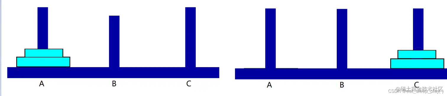 汉诺塔是啥大家都知道,汉诺塔的故事这里就不做介绍了,有读者感兴趣的可以去搜一搜,作者是用Java来实现的汉诺塔。