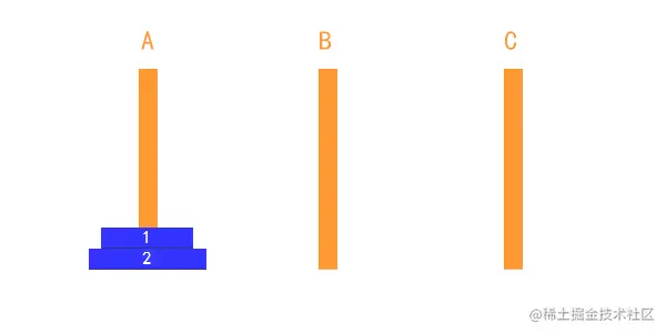 两个盘子 n-1 就是会有一个盘子在B上暂存
