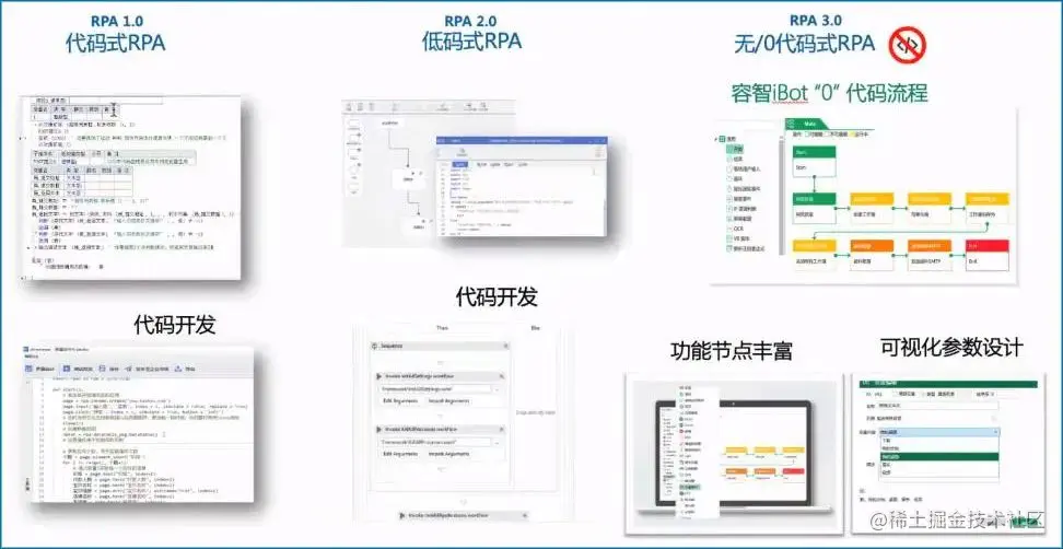 从代码的角度,柴亚团将RPA产品分为三代:第一代为有代码RPA;第二代为低代码RPA;第三代为功能节点丰富、可视化参数第三代0代码RPA,容智iBot正是第三代RPA(即将推出第四代)。