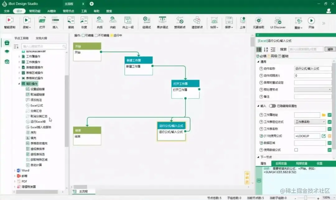 单是在Excel分类中,就有上百的功能点,甚至可以很直接输入Excel公式,并且支持很多RPA产品所不支持的数据分类与汇总、筛选、透视等功能。实现方式,都是简单的拖拽操作。
