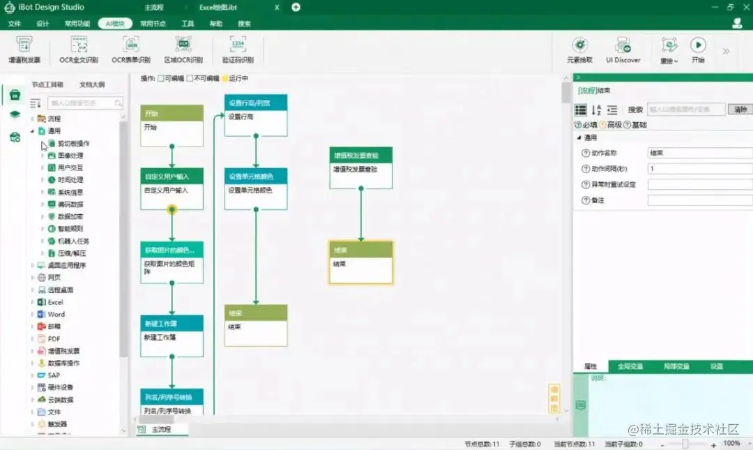 容智iBot设计器没有代码视图,只有流程图。所有流程都是以节点拼起来的,过程不需要任何代码。