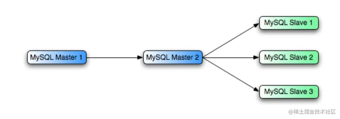 添加一个额外的主服务器作为从有助于分担主服务器的负载, 并且这种配置模型还可以自由扩展,以便可以创建多个次主服务器,所有这些次服务器都作为主服务器的从,具体配置取决于具体的需求。