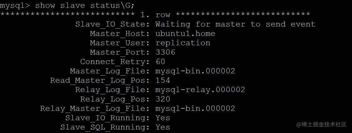 你会看到当前主正在写的文件以及当前log的位置,这些信息会用来配置从: