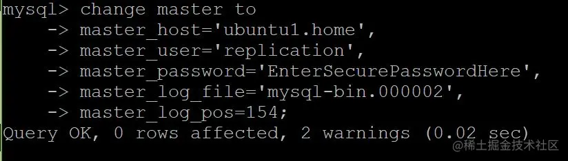 连接到从,使用CHANGE_MASTER_TO配置从: