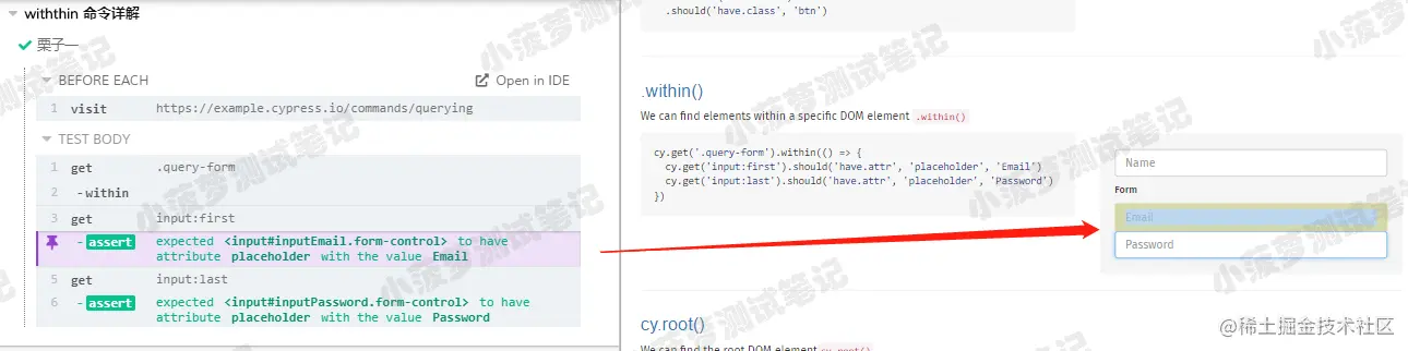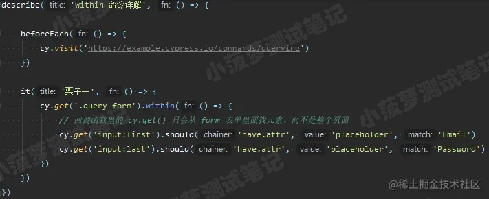 重点:回调函数里的 cy.get() 只会从 form 表单里面找元素,而不是整个页面