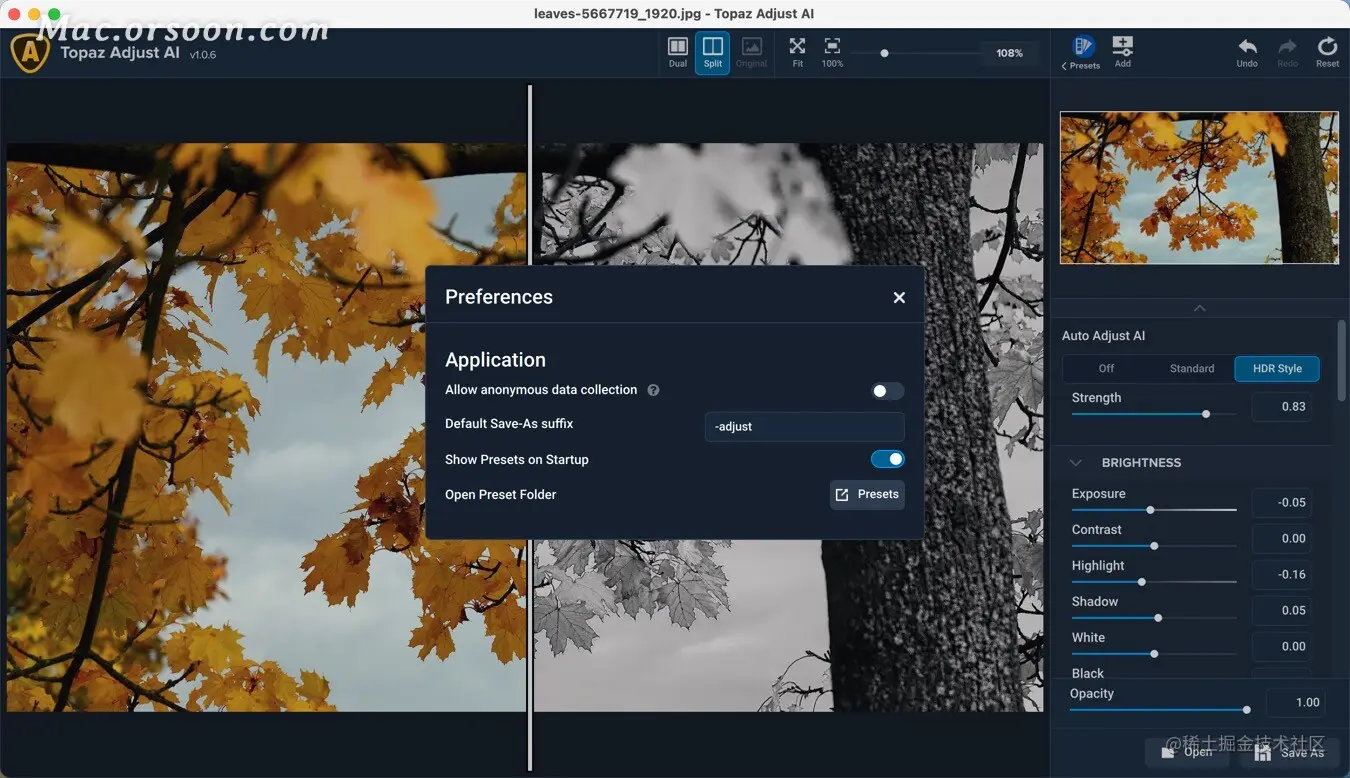Topaz Adjust AI是一款专业的HDR渲染软件,它能够利用机器学习来分析普通照片并将其转换为生动活泼的图像,而这些图像通常需要耗时的手动调整。Adjust AI 是以最少的用户输入实现极致清晰度、细节、对比度和引人注目的美感的最快方式。