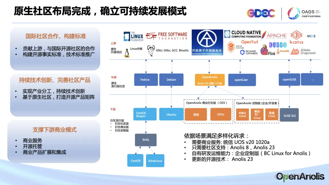 第三:在产品上做好关键生态和关键场景,尤其是在 CentOS 迁移过程中做好软硬件的兼容性。例如,作为社区新布局,我们已经在社区技术委员增补了主流的服务器厂商代表。