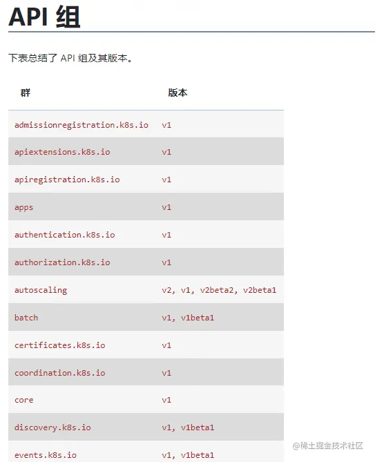 - 指定组:路径/apis/组名字/版本,例如apiVerison:btach/v1.具体可上官网的API参考文档查看
