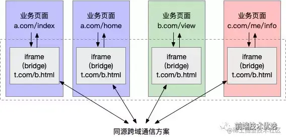 在我的解决跨域的专题文章中有详细介绍代码方案,其思路如下图: