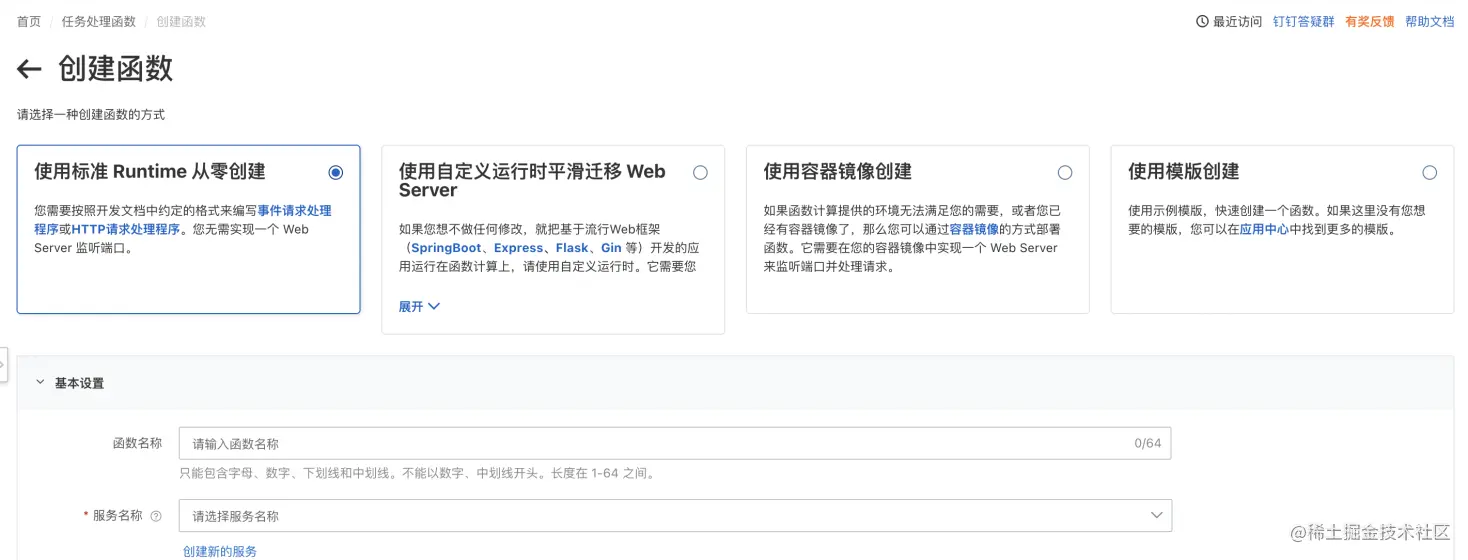函数计算的上手流程相对简单,通过函数计算文档,可以看到整体流程: