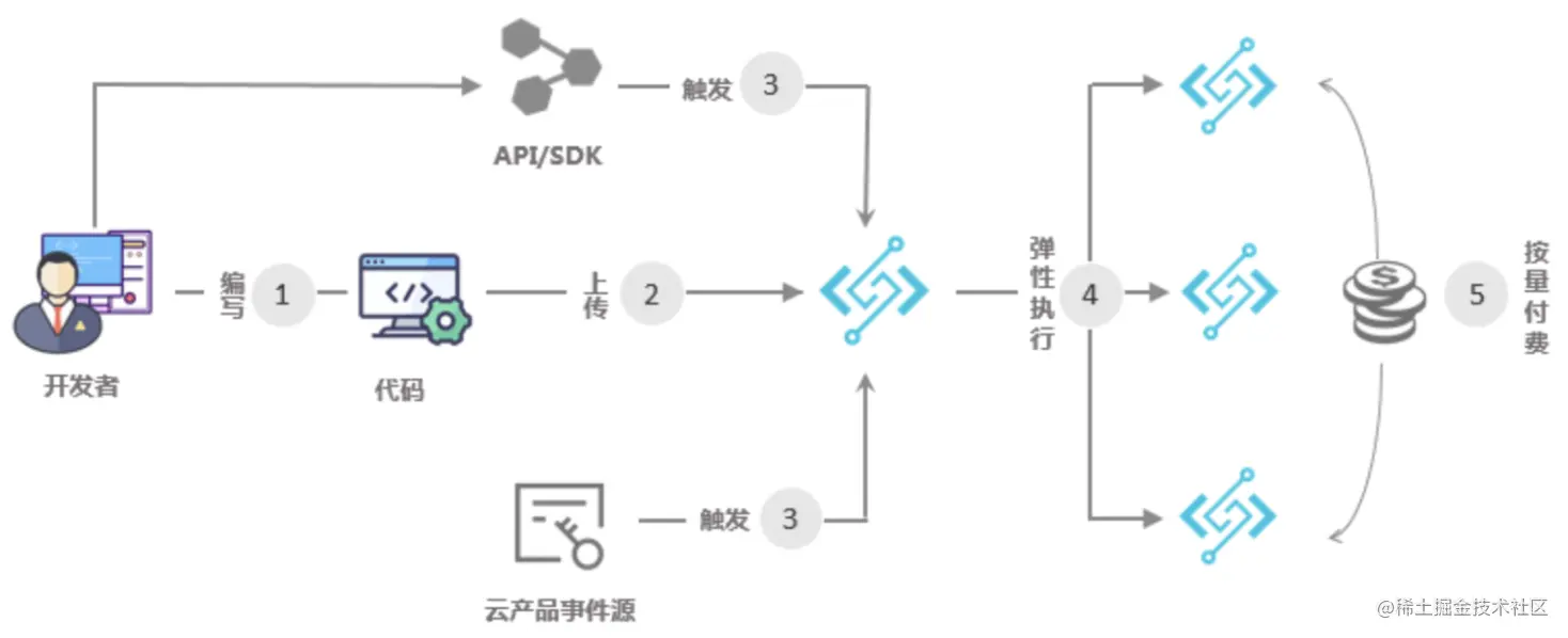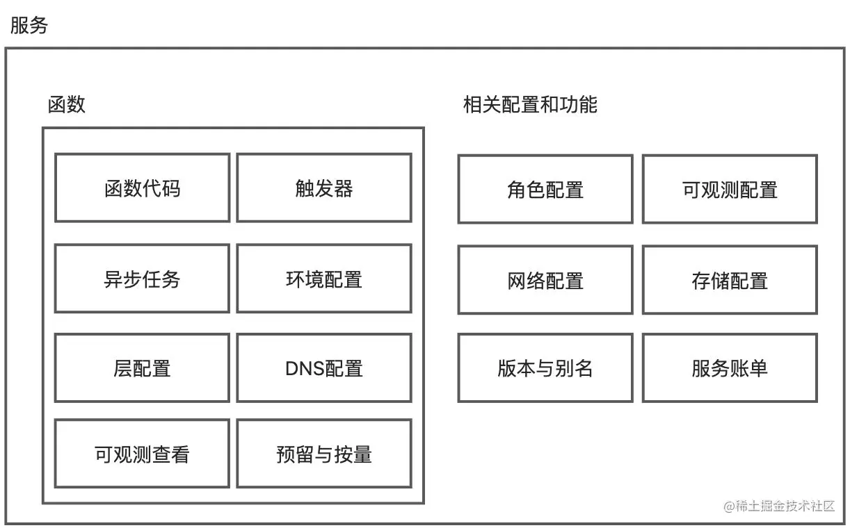 - 函数:一种确切的资源或业务逻辑;由代码,触发器以及相关的配置组成;