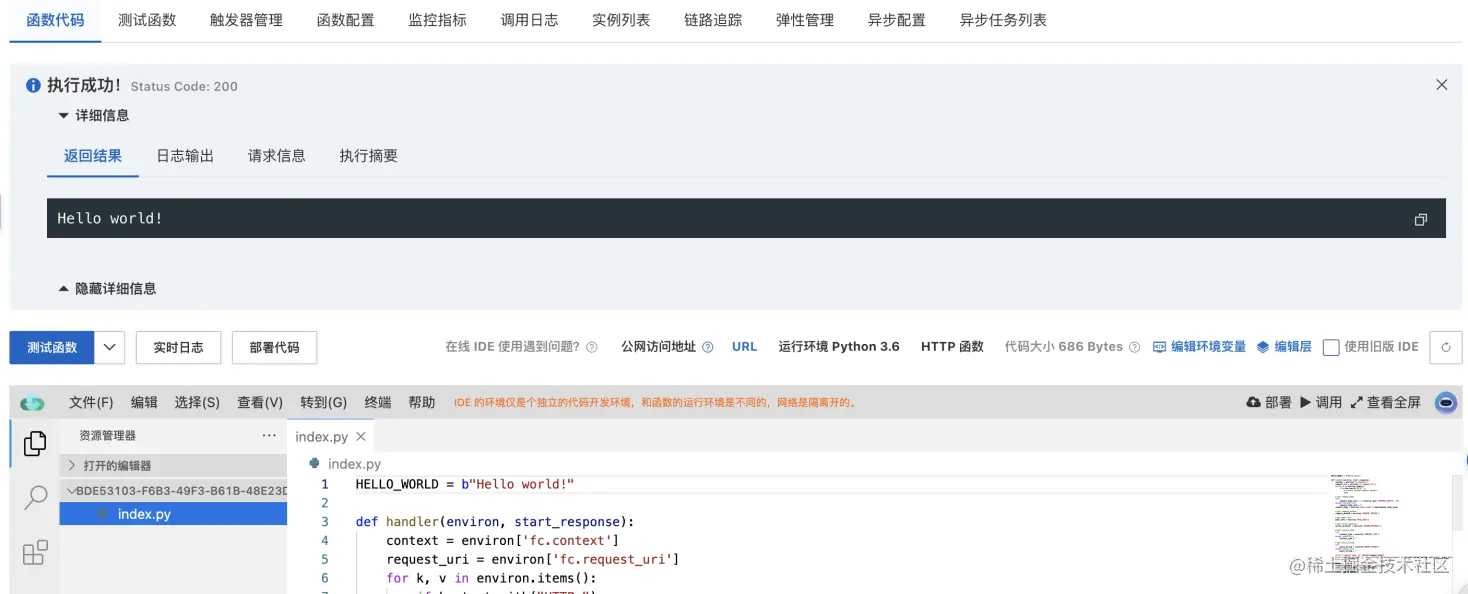 - WebIDE 很强大,通过计算资源的分配可以在线进行代码编写和项目构建,但是 WebIDE 的环境和函数计算的环境依旧是不通的,不仔细研读和体验,会被误会在 WebIDE 中的调试即是在函数环境下的调试;