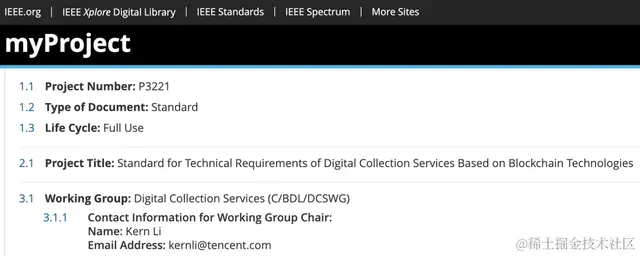 2022 年 5 月,IEEE-SA 标准委员会正式通过了 IEEE 中首个区块链数字藏品的国际标准立项。标准编号为IEEE P3221,名称为“Standard for Technical Requirements of Digital Collection Services Based on Blockchain Technologies”(《基于区块链的数字藏品服务技术要求》)。该标准由腾讯牵头提出,将对基于区块链技术的数字藏品服务的技术要求进行规范化,包括技术架构、功能组件和安全要求等。