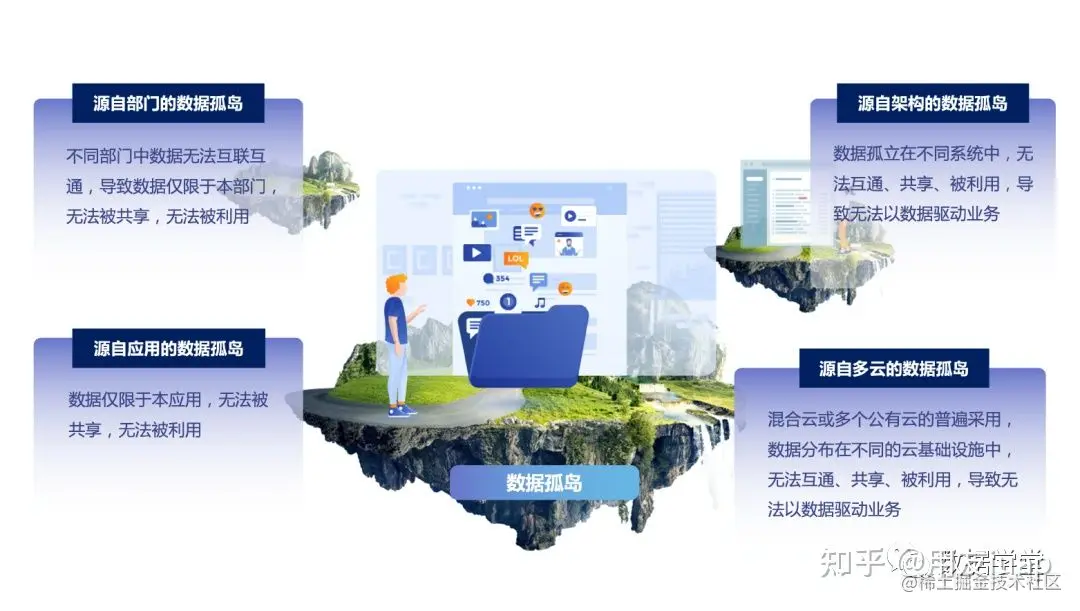 组织中一切活动都会产生数据,但这些海量的数据由于组织战略、架构设置、数字化建设等原因,分散存储在组织的各个部门、业务系统、应用之中,彼此无法互联互通、共享,也无法被利用,形成了一个又一个孤立的数据岛屿。
