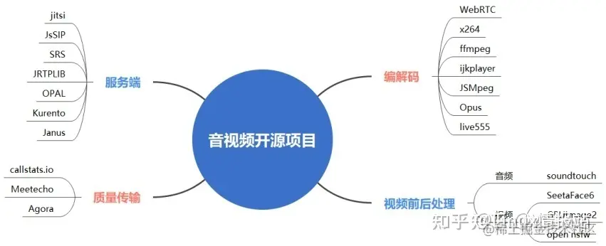 比如,前后处理环节有美颜、滤镜、回声消除、噪声抑制等,采集有麦克风阵列等,编解码有VP8、VP9、H.264、H.265等。
