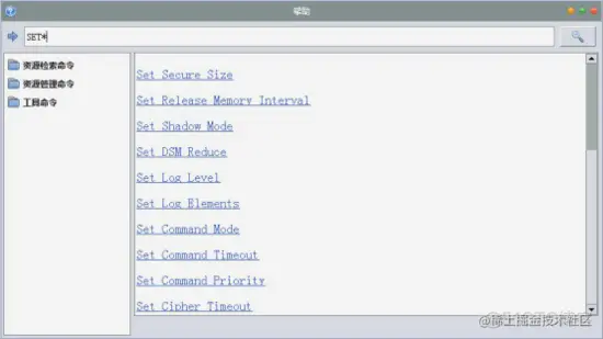 检索栏同时支持Laxcus分布式命令。Laxcus分布式操作系统有大量的分布式命令,查阅它们可以输入“HELP 命令关键字”来检索。比如输入“HELP SET*”后,会在桌面弹出帮助窗口,上面将显示与“SET”关键字相关的所有命令。