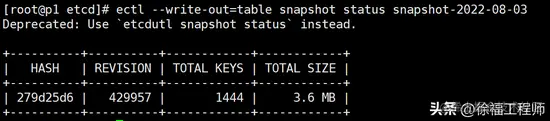 Etcd的版本2和3差别很大,因笔者使用的是3版本,备份命令是这样(在任一控制平面主机操作均可),命令执行不用对Etcd做关闭操作。