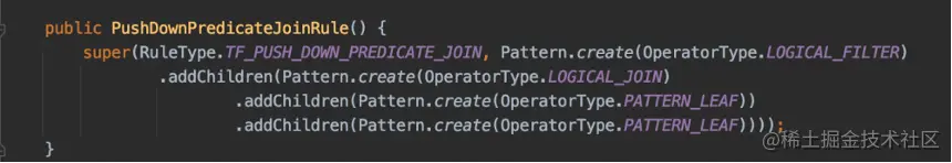 - 根据 Pattern 的数据结构可知,取 FilterOperator 的子节点,一定是 JoinOperator 。将匹配的 Predicates 分给 FilterOperator,将不匹配的 Predicates 生成新的 FilterOperator 挂到FilterOperator 的 2 个子节点之上、JoinOperator 之下。