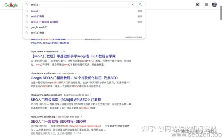 SEO入门在谷歌的排名