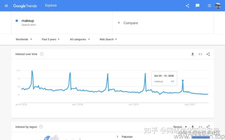 谷歌趋势搜索makeup关键词