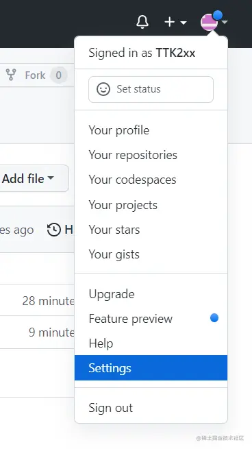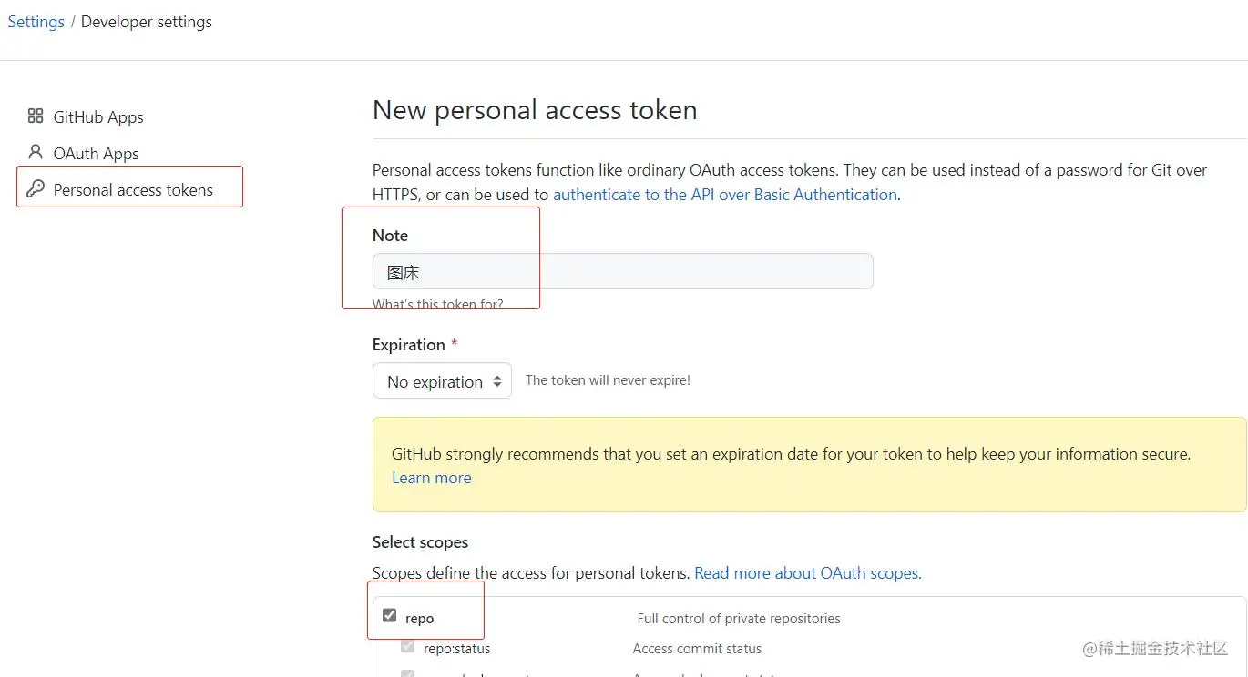 然后找到Developer settings --> Personal access tokens --> Generate new token