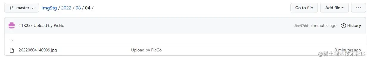 通过 picgo upload [图片文件路径]命令上传一个图片试一下,命令行无报错,github仓库有了这个文件,就是成功了。