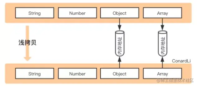 复制对象与被复制对象使用的还是同一个内存地址上的值。