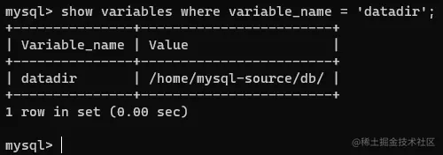 数据库创建,那我们如何获取当前的数据目录呢? 我们可以查询datadir变量的值来确定数据目录是放在那儿的,我们来尝试一下。