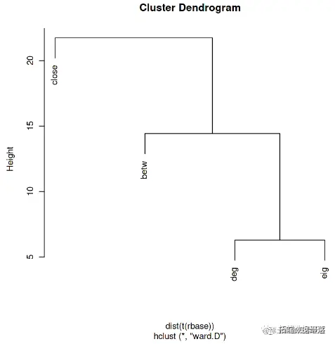 betw 1.0000000 0.5763487 0.8333763 0.6737162close 0.5763487 1.0000000 0.7572778 0.7989789deg 0.8333763 0.7572778 1.0000000 0.9404647eig 0.6737162 0.7989789 0.9404647 1.0000000