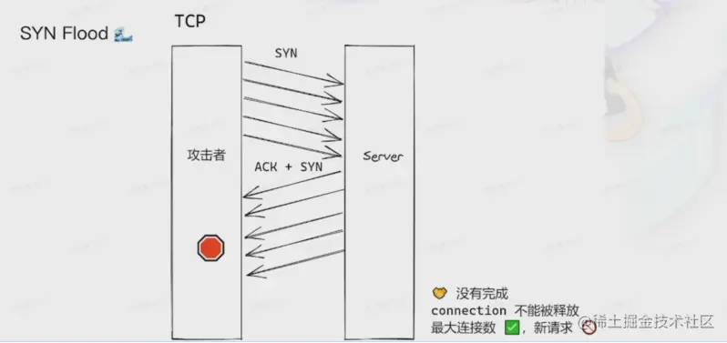 短时间内,来自大量僵尸设备的请求流量,服务器不能及时完成全部请求,导致请求堆积,进而雪崩效应,无法响应新请求。