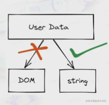 - 作为前端工程师我们直接将用户的字符串转换成DOM