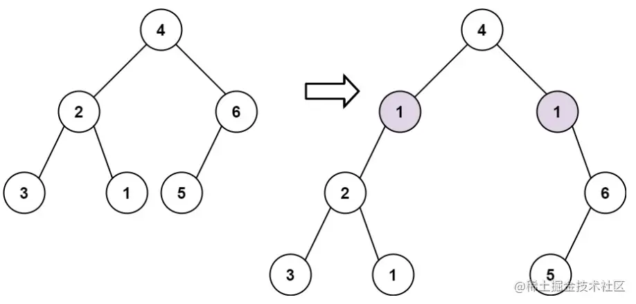 depth,对于深度为depth - 1的每个非空树节点cur,创建两个值为val的树节点作为cur的左子树根和右子树根。cur原来的左子树应该是新的左子树根的左子树。cur原来的右子树应该是新的右子树根的右子树。- 如果