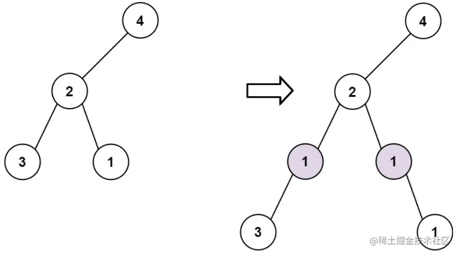 【输出】 [4,2,null,1,1,3,null,null,1]