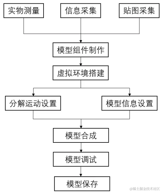 在制作商品模型制作主要分为前期准备、环境搭建、组件制作、模型合成等步骤,如下图所示。