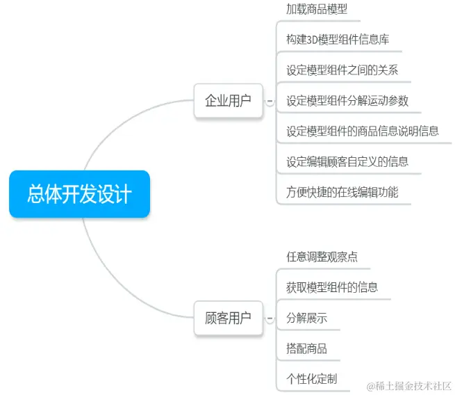 - 对于企业用户,该平台实现如下的功能:可以加载产品模型,可以将制作的三维模型添加到特定的虚拟环境中,前提是符合系统平台支持的文件格式的三维模型文件;可以构建3D模型组件信息库,即企业或商家将商品的3D模型导入到该平台中,平台将该模型中各个组件模型的关联信息与构成信息,封装存储在云存储中,以便日后组合使用;设定模型组件之间的关系,即企业或者商家可以通过一些简单的便捷的操作的方式建立组件间的关系,形成树状结构;可以设定组件运动行为参数,即企业或者商家可以设定模型的分解状态;设定组件的文字说明信息,即企业或者商家可以对组件添加商品文字信息说明,或者重新命名,或者添加一些参数,设定和编辑顾客用户自定义的信息,即企业或商家可以设定顾客用户自定义的权限;方便快捷的在线编辑功能,即提供一个在线编辑器功能,可以供商家实时修改,实时预览,简单操作即可完成商品模型的制作,商品模型的运动分解参数,商品信息的添加等。