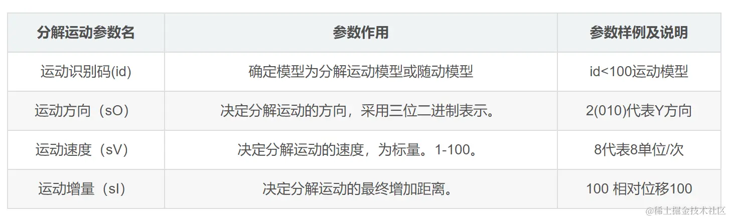 为了给用户对商品的内部构成(模型组件)的直观详细的了解,实现一个模型分解功能,将商品模型内部无法观察的部分展示出来,用户点击分解按钮,商品模型开始按照每个模型的分解运动参数(下表所示)进行分解运动。分解运动参数保存在每一个模型组件的userData对象中,其中属性id的值决定该模型组件是否分解运动模型,id值两位数以下,为分解运动模型,三位数以上则为随动分解运动模型或不分解运动模型;sO(speed Orientation)代表运动方向,采用三位二进制表示,对应坐标轴的XYZ,例如4(100)代表沿着X正向运动,-2(-010)代表沿着-Y轴运动。sV(speed Velocity)代表运动的速度(范围1-100)。值越大,该模型组件的分解运动速度越快。sI(speed Increment)代表运动增量,决定分解运动的最终增加的距离,及原位置的相对位移大小。当用户点击合成按钮时,通过反向运动得以复原。