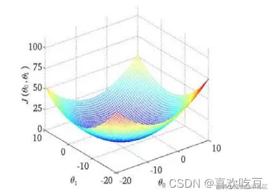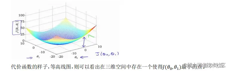 则可以看出在三维空间中存在一个使得𝐽(𝜃0, 𝜃1)最小的点。
