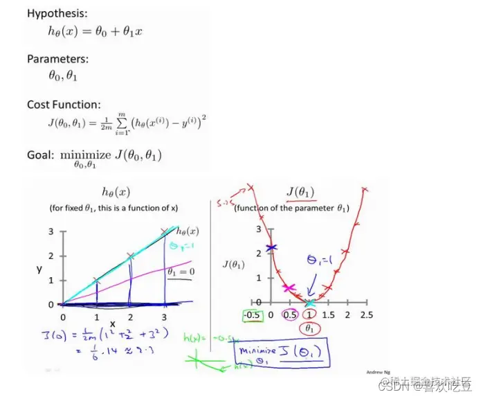 在后续文章中,我们还会谈论其他的代价函数,但我们刚刚讲的选择是对于大多数线性回归问题非常合理的
