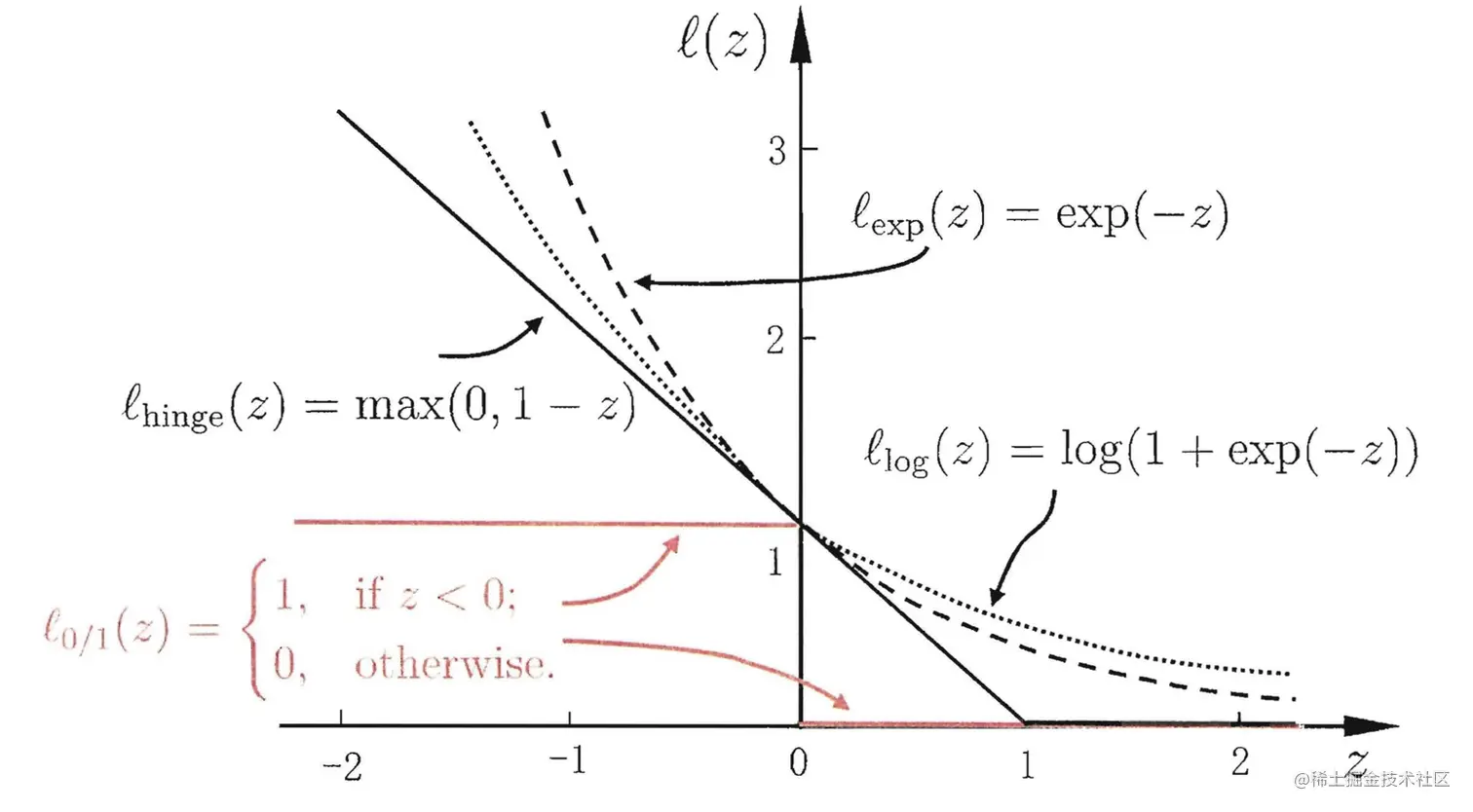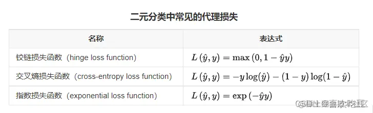 这里给出二元分类(binary classification)中0-1损失函数的代理损失: