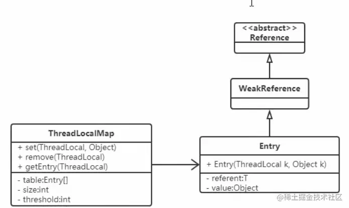 ThreadLocalMap中的节点继承的是软引用,ThreadLocalMap没有继承Map接口,采用独立的方式实现map的功能。