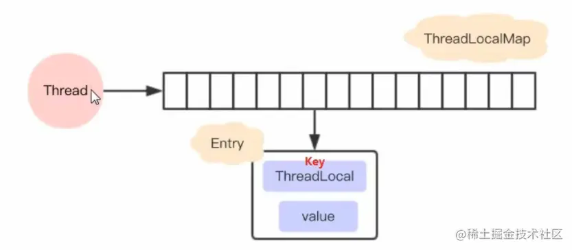 ThreadLocal的底层是使用map进行实现的,和之前的区别就是map的key使用ThreadLocal存储的。而不再是当前线程Thread,且一个线程中可以有多个 ThreadLocal,存储在 ThreadLocalMap中,同样的 ThreadLocalMap也有初始大小和阈值,初始大小为16,阈值为当前大小的三分之二。