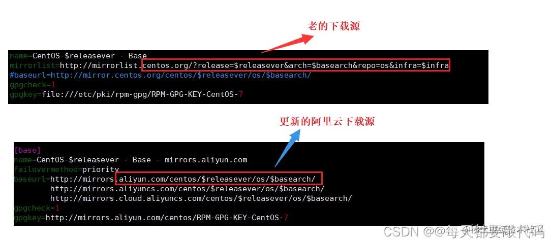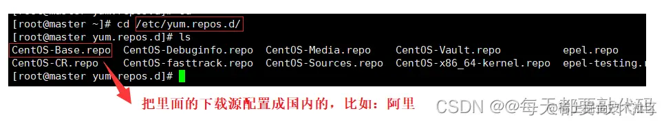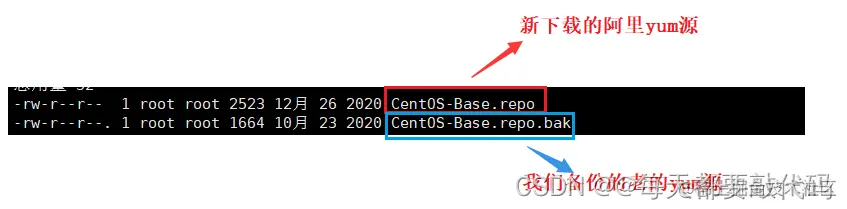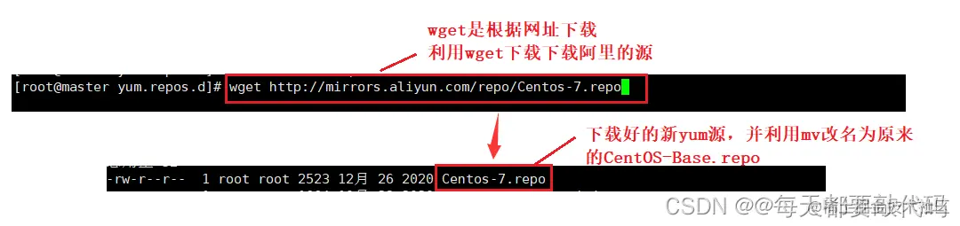 ❤️下载阿里云的源,这里通过百度查找就可以;利用wget命令进行下载:wget +阿里云网址(url);下载好以后并进行改名,我们还是利用mv命令,把新下载的名字改为原来老的名字CentOS-Base.repo